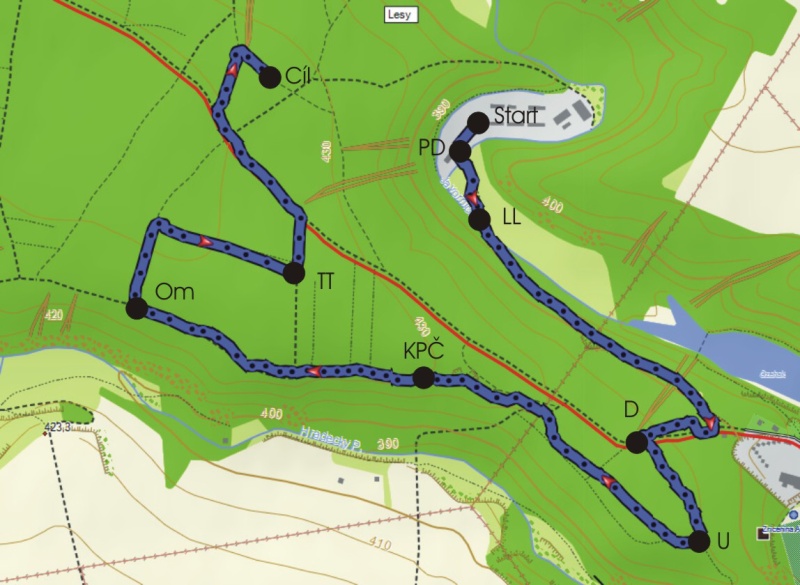 Délka tratě: 2830 m, převýšení 60 m